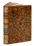 Legatura in piena pelle marmorizzata con titolo in oro su tassello al dorso, decorazioni dorate ai comparti.
