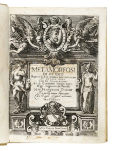 OVIDIUS NASO PUBLIUS, Le metamorfosi [...] ridotte da Gio Andrea dell'Anguillara in ottava rima : Con le Annotationi di M. Gioseppe Horologgi. In Vin. : presso Bern. Giunti, 1584. In-4° (mm 235x175).