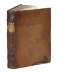 Legatura in piena pergamena con titolo manoscritto su tassello cartaceo al dorso. Tassello parzialmente assente, fori di tarlo e mancanze lungo le cerniere e il dorso, altre mancanze ai piatti. (1)