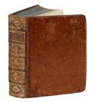 Legatura in piena pelle con titoli e decorazioni impresse in oro ai comparti del dorso, tagli blu.