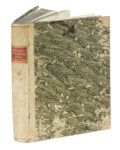 Legatura settecentesca in mezza pergamena con punte e piatti in carta decorata.