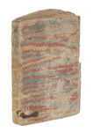 Legatura coeva in pieno cartonato decorato con titolo manoscritto su cartiglio al dorso.