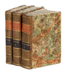 3) Delle isole di Sunda, di Nikobar, e Andoman e del regno di Siam. In Venezia : presso Giambatista Albrizzi q. Gir., 1738. Pagine [14], 397, 3 bianche con 1 antiporta e 11 tavole fuori testo, di cui 6 ripiegate. Strappi che interessano l'inciso alle carte geografiche, sporadiche fioriture. Legatura coeva omogena in mezza pelle con piatti in carta decorata e titoli in oro su tassello al dorso. Piccole mancanze a piatti e dorso. (3)