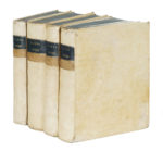 Legatura coeva in piena pergamena rigida con unghiature e titoli in oro su tassello al dorso, tagli blu.