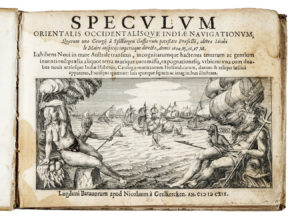 SPILBERGEN Joris (van), Speculum orientalis occidentalisque Indiae navigationum. Lugduni Batauorum : apud Nicolaum a Geelkercken, 1619. In-4° oblungo (mm 171x235).