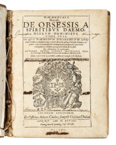 THYRAEUS Petrus, Daemoniaci, hoc est : De obsessis a spiritibus daemoniorum hominibus, liber unus... Coloniae Agrippinae : ex officina Mater. Cholini, sumptibus Gosuini Cholini, 1598. In-4° (mm 199x157).