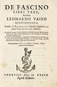 VAIRO Leonardo, De fascino libri tres. Venetiis : apud Aldum, 1589. In-8° (mm 158x107).