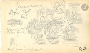 Raoul DUFY (1877-1953). Dessin avec notes autographes ; mine de plomb, 10,6 x17 cm, cachet …