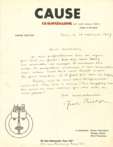 André BRETON (1896-1966). L.A.S., Paris 14 septembre 1947 ; 1 page in-4 en-tête CAUSE Le …