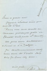 Alexandre DUMAS père (1802- 1870). L.A.S., [mars 1854, à Pauline Viardot] ; 1 page in-8 …