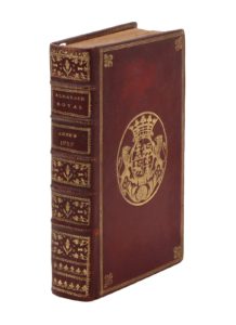 Paris, Veuve d'Houry & Debure, [1787]. In-8, maroquin rouge, triple filet doré et fleurs de lis aux angles, armoiries au centre, dos orné, dentelle intérieure, tranches dorées (Reliure de l'époque).Fraîche reliure en maroquin rouge aux armes de Jean-François Joly de Fleury (1718-1802), administrateur général des Finances, en remplacement de Necker, de mai 1781 à mars 1783.
