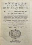 Ce recueil compilé par l'abbé janséniste Jean-Antoine Gazaignes (1717-1802) rassemble tous les actes, écrits, dénonciations, avis doctrinaux, requêtes, ordonnances, mandements, instructions pastorales, décrets, censures, bulles, brefs, édits, arrêts, sentences et jugements émanés des tribunaux ecclésiastiques et séculiers, contre la doctrine, l'enseignement, les entreprises et les forfaits des soi-disants Jésuites, depuis 1552, époque de leur naissance en France, jusqu'en 1763. Malgré son hostilité à l'égard de la Compagnie, il renferme de nombreuses informations sur les missions jésuites en Amérique du Sud, aux Indes, en Chine et au Japon.