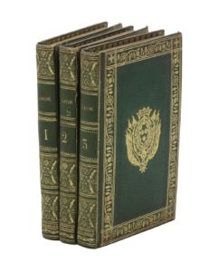 Paris, Didot l'aîné, 1780. 3 volumes in-18, maroquin vert, bordure florale dorée sertie d'une frise à froid, armoiries au centre, dos lisse richement orné, dentelle intérieure, doublure et gardes de soie verte, tranches dorées (Lejard).Charmante et rare édition de la collection du comte d'Artois, « que l'on placera toujours parmi les chefs-d'œuvre des Didot » (Brunet).