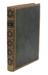 Très bel exemplaire relié en maroquin vert aux gardes de soie rose.