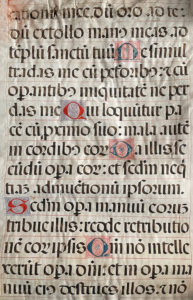 Onze lettrines filigranées peintes en rouge, en bleu ou bicolores ornent le texte : une grande, haute de deux lignes, dont les rinceaux se poursuivent dans la marge, et dix d'une ligne.