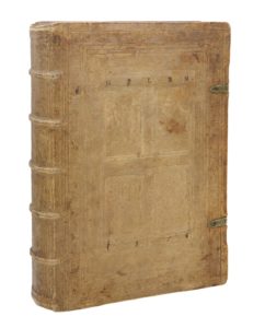 Superbe reliure en peau de truie estampée, exceptionnelle tant par son format que par son remarquable état de conservation.