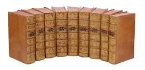 Francfort, en foire, J.-F. Bassompierre de Liège, J. van den Berghen de Bruxelles, 1752. 8 tomes en 9 volumes in-12, veau blond, dos orné, coupes guillochées, tranches rouges (Reliure de l'époque).Nouvelle édition du célèbre ouvrage de vulgarisation scientifique de l'abbé Pluche (1688-1761), publiée par deux libraires belges à l'occasion de la grande foire du livre qui se tient à Francfort depuis le XVe siècle.