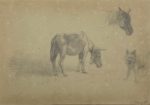 1871-1874. In-4 oblong, chagrin prune, important encadrement estampé à froid, dos lisse muet, tranches dorées (Reliure de l'époque).Bel album de dessins à la mine de plomb recueillant 61 vues pittoresques et paysages naturels à pleine page, parfois animés de personnages ou d’animaux, exécutées à Ostende, Remouchamps, Spa, Villers-sur-Mer, Houlgate, Cabourg, Saint-Malo, Dinard, Saint-Servan, Pierrefonds, etc.