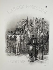 Paris, Boussod, Valadon & Cie, 1885-1889. 2 tomes en 16 livraisons in-folio, en feuilles, couvertures imprimées de livraisons, portefeuilles d'éditeur en demi-percaline grise avec coins. Édition originale de ce luxueux ouvrage sur l'armée française au début de la Troisième République.