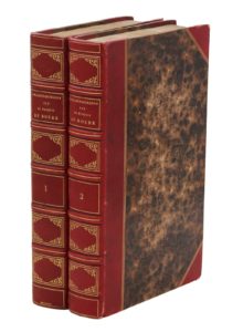 Paris, Techener, 1836-1837. 2 volumes in-8, demi-maroquin rouge avec coins, triples filets dorés, dos orné, tête dorée, non rogné (Bauzonnet).Édition originale de ce célèbre recueil d’études bibliographiques d'Auguste-Scipion de Grimoard de Beauvoir, marquis du Roure de Beaumont (1783-1858).