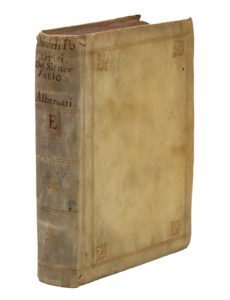 Rome, Giacomo Dragondelli, 1664. In-4, vélin souple, double filet et fleurons d'angles dorés, dos lisse orné de filets et d'une étoile dorée répétée, tranches jaspées (Reliure italienne de l'époque).Troisième édition, après celles de 1602 et de 1603, de cet essai important pour l'histoire des idées politiques au XVIIe siècle.