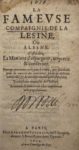 [BUONI (Tommaso)] — La Fameuse Compaignie de la Lésine, ou Alesne, c'est à dire la manière d'espargner, acquerir et conserver. – Continuation des canons et statuts de la fameuse Compagnie de la Lésine.