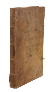In-folio (345 x 225 mm), vélin rigide, titre manuscrit sur le premier plat, dos lisse, traces de lacets (Reliure de l'époque).Ancien livre de comptes renfermant 109 ff. vierges. Il a été amputé des feuillets utilisés au début et à la fin du volume. Un mors fendu sur 20 cm, quelques petites rousseurs.