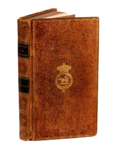 On joint : MARMONTEL (Jean-François). Œuvres posthumes. Logique. Paris, Xhrouet, e.a., 1805. In-12, veau moucheté, double filet doré, armoiries au centre, dos lisse orné, roulette intérieure, tranches mouchetées (Reliure de l'époque). Les armes sur les plats sont ceintes de la devise de l'ordre de la Jarretière : Honi soit qui mal y pense. Minimes défauts aux mors et aux coins.