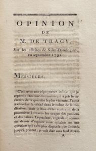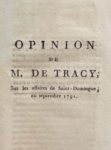 [ESCLAVAGE]. DESTUTT DE TRACY (Antoine-Louis-Claude) — Opinion sur les affaires de Saint-Domingue, en septembre 1791. [Paris], Impr. de Laillet,