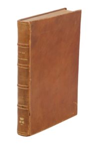 Londres, T. Basset, J. Wright, R. Chiswel, 1675-1676. 2 parties en un volume petit in-4, veau fauve, double encadrement de filets et fleurons d'angles à froid, dos fileté, supralibris doré en queue, tranches lisses (Reliure du XIXe siècle).Nouvelle édition complète des deux parties de cette hagiographie composée par Richard Johnson (1573-1659?) des Sept Champions de la Chrétienté, à savoir saint Georges pour l'Angleterre, saint Denis pour la France, saint Jacques pour l'Espagne, saint Antoine pour l'Italie, saint André pour l'Écosse, saint Patrick pour l'Irlande et saint David pour le pays de Galles. La première partie est datée de 1676 et la seconde de 1675, comme dans les autres exemplaires consultés.