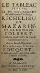 [LA FONTAINE (Jean de), Isaac de BENSERADE, Pierre CORNEILLE, e.a.] — Le Tableau de la vie et du gouvernement de Messieurs les Cardinaux Richelieu et Mazarin, et de Monsieur Colbert, représenté en diverses satyres et poésies ingénieuses ; avec un recueil d'épigrammes sur la vie et la mort de Monsieur Fouquet, et sur diverses choses qui se sont passées à Paris en ce tems-là.