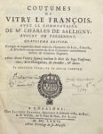 Châlons, Jaques Seneuze, 1676. In-4, basane brune, dos orné, tranches jaspées (Reliure de l'époque).Édition la meilleure et la plus complète de la coutume de Vitry-le-François commentée par Charles de Salligny.