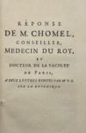 Selon les bibliographes, cette Réponse est de Tournefort lui-même, qui l'a fait paraître sous le nom de son élève et ami Chomel.