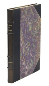 Paris, Labitte, 1881. In-8, demi-chagrin bleu nuit avec coins, tête dorée (Reliure postérieure).Catalogue de la première vente de Joseph Renard (1822-1882), teinturier en soie qui forma l’une des plus célèbres collections lyonnaises. Elle comprend 1587 lots qui furent dispersés du 21 au 30 mars 1881. Ses livres firent l’objet de deux autres ventes en 1884, à Lyon et à Paris, et sa collection d’autographes d’une dernière en 1889.