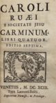 Venise, Lorenzo Baseggio, 1699. In-12, basane fauve, dos orné, tranches dorées (Reliure ancienne). Septième édition de ce recueil de poèmes néo-latins composés par le jésuite Charles de La Rue (1643-1725).