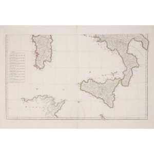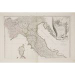 Paris, chez l'auteur, 1743. 2 cartes volantes, contours colorés, pour l'ouvrage "Analyse géographique de l'Italie". Pâle mouillure.