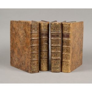 Quelques coiffes manquantes, frottements ; mouillures à certains volumes. Cachet "L. Auché, notaire honoraire".