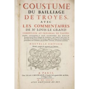 JURISPRUDENCE Coustume du bailliage de Troyes, avec les commentaires de Mr Louis Le Grand Paris, …