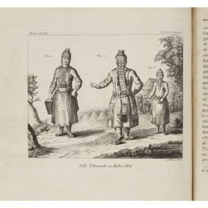 Édition originale de la première traduction en français, par M. Gauthier de La Peyronie, superbement illustrée de 123 planches numérotées : vues, costumes, histoire naturelle, cartes et plans (dont une grande carte dépliante de l'empire de Russie, sur papier fort). L'édition originale parut en allemand, de 1771 à 1776.