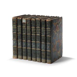 Paris, Bossange, 1828 ; 8 vol. in-8, reliures de l’époque demi-veau bleu, dos à nerfs ornés, un peu usagés, coiffes élimées.