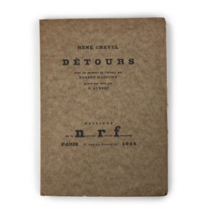 CREVEL (RENÉ) Détours Paris, NRF, 1924; in-12 broché. Édition originale ornée d’un portrait …