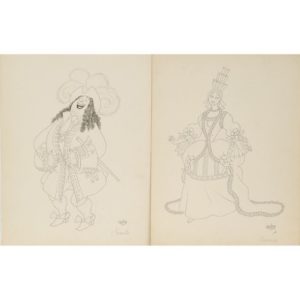 André Sauret, 1954. Ens. 2 dessins à l'encre de chine, signés, 31,5x24cm. "Mariane" et "Cléante". Pas au cat. de l'Œuvre intégral.