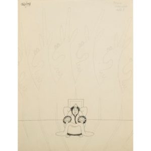 André Sauret, 1954. Encre de chine, "Premier intermède, acte I", le malade sous les ombres des médecins. Signé, trace de croquis au verso. 31,5x24 cm. Pas au cat. de l'Œuvre intégral.