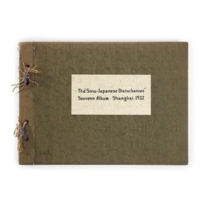 Shangai, 1932. Album in-8 oblong, soie verte brochée (usures).