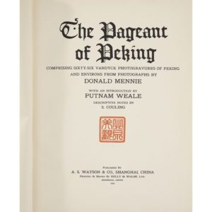 MENNIE (DONALD) The Pageant of Peking Shanghai, Watson, 1922. In-folio, cartonnage de soie bleue …