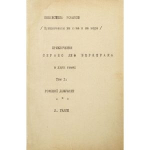 Biblioteka Romanov. Bibliothèque des romans) / Prikliucheniia na sushe i na more. Aventures sur terre et en mer. / Prikliucheniia Sirano de Berzheraka v dvukh tomakh. Aventures de Cyrano de Bergerac en deux volumes. / Rokovoi Dokument. Document fatidique. Titre, 187 pp.