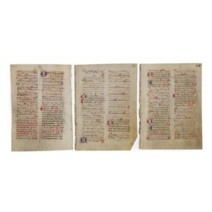 [BRÉVIAIRE] Trois feuillets extraits d'un petit bréviaire noté En latin, manuscrit décoré sur …