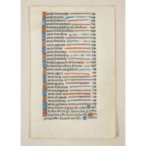 Feuillet extrait d'un livre d'heures imprimé, avec initiales et bouts-de-lignes peintes