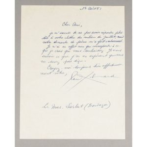 Lettre autographe signée de Paul Eluard à son " Cher Ami "