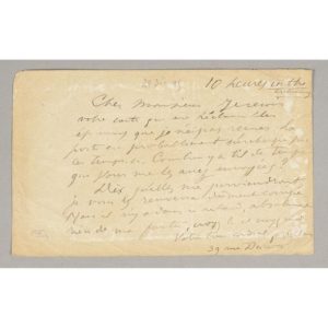 S.l.n.d, " 10 heures in the evening " [28 décembre 1895, date indiquée au crayon], billet oblong, 1 p. in-8